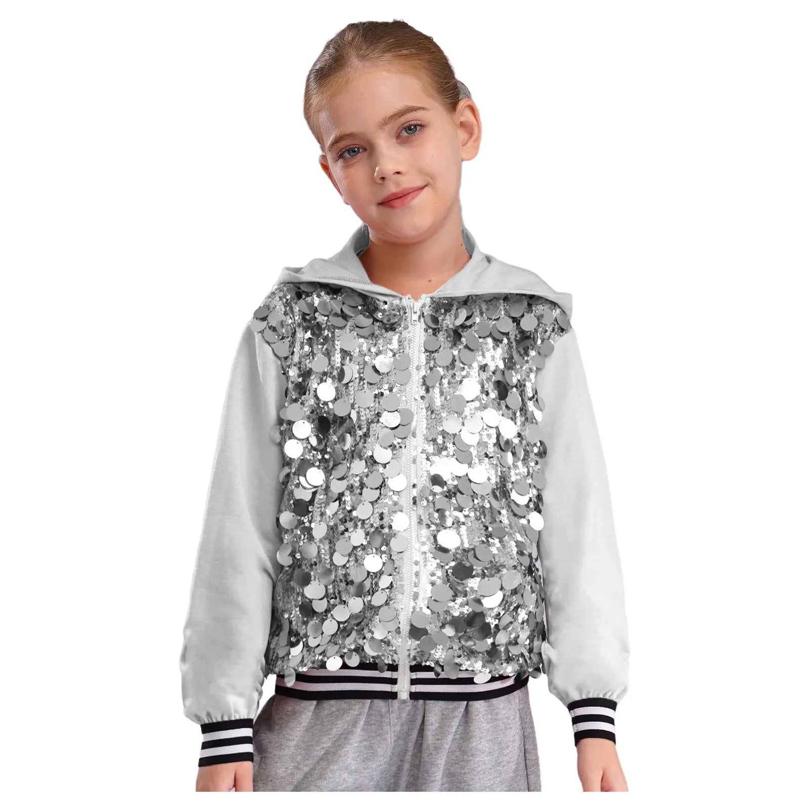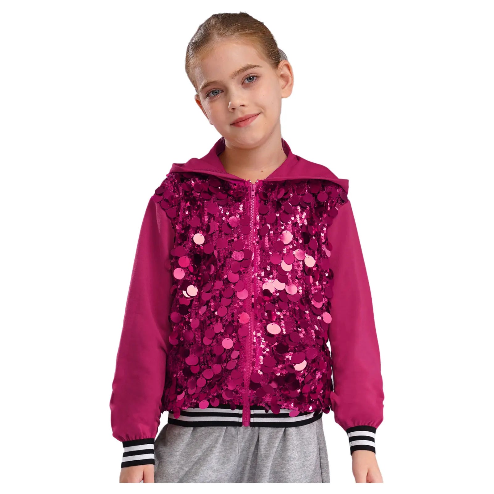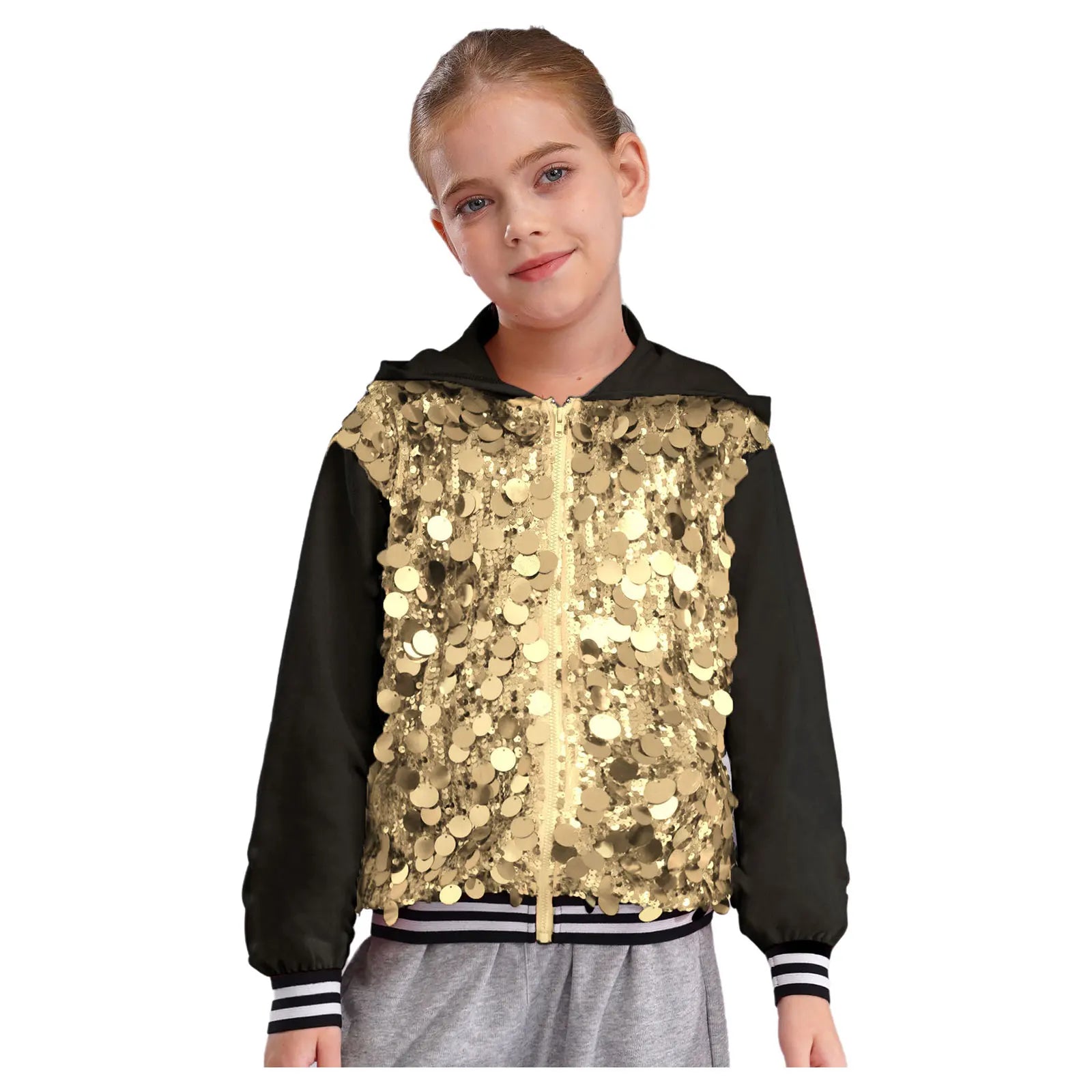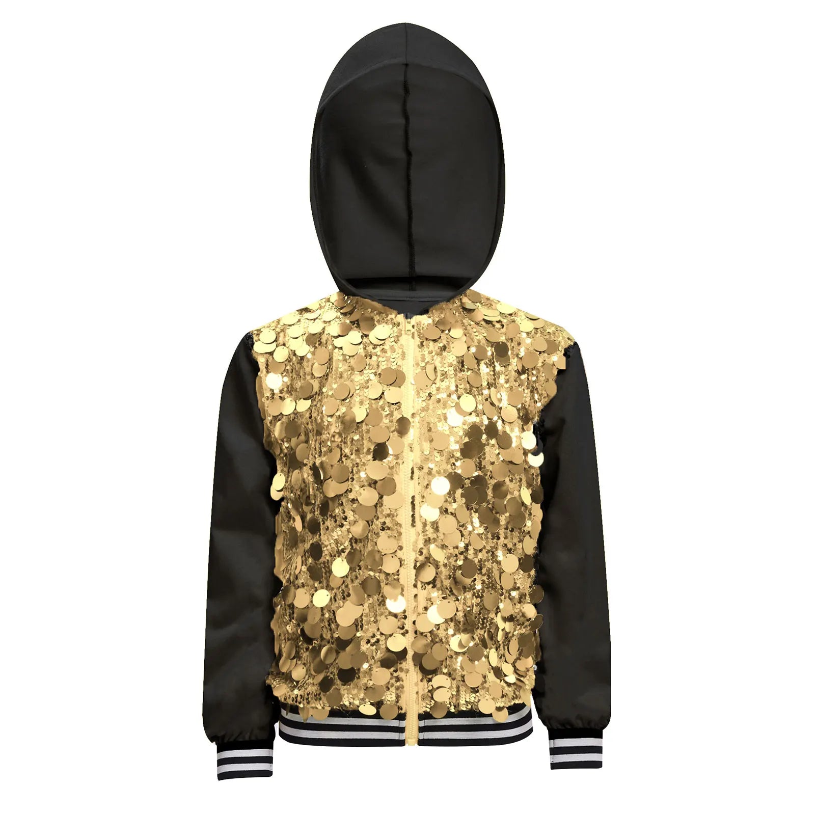 Girls Metallic Shiny Sequins Hooded Jacket (Age 6-16 YRS)