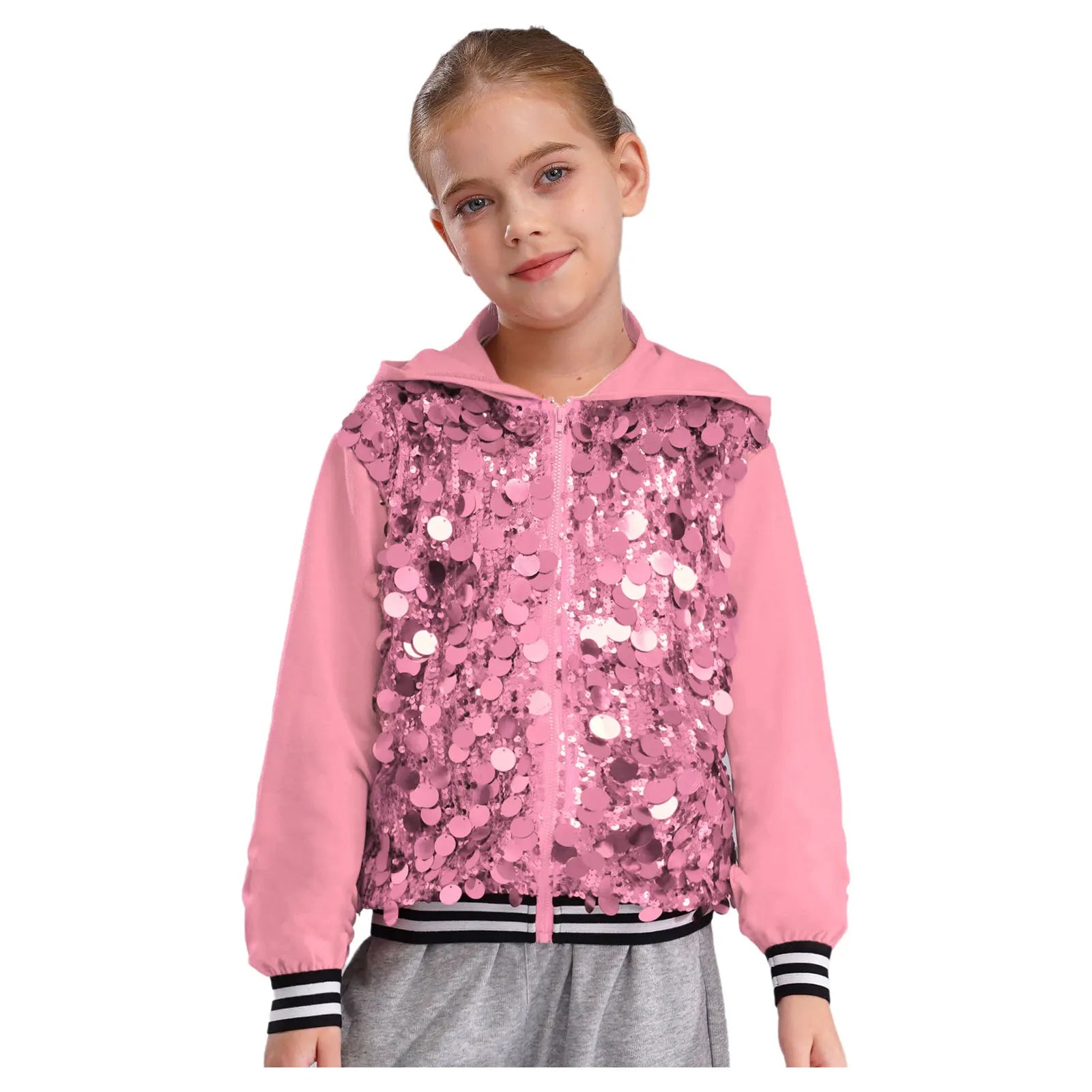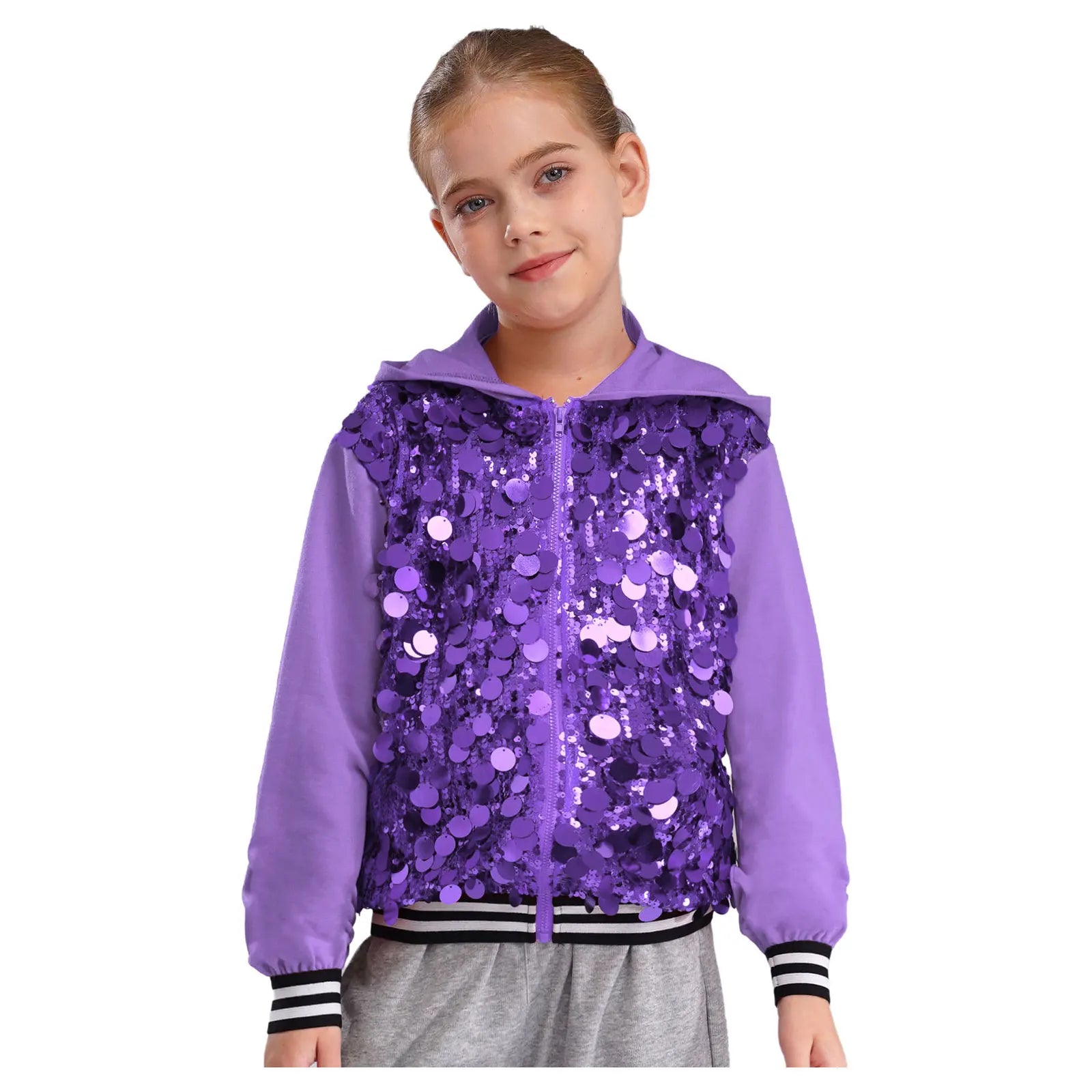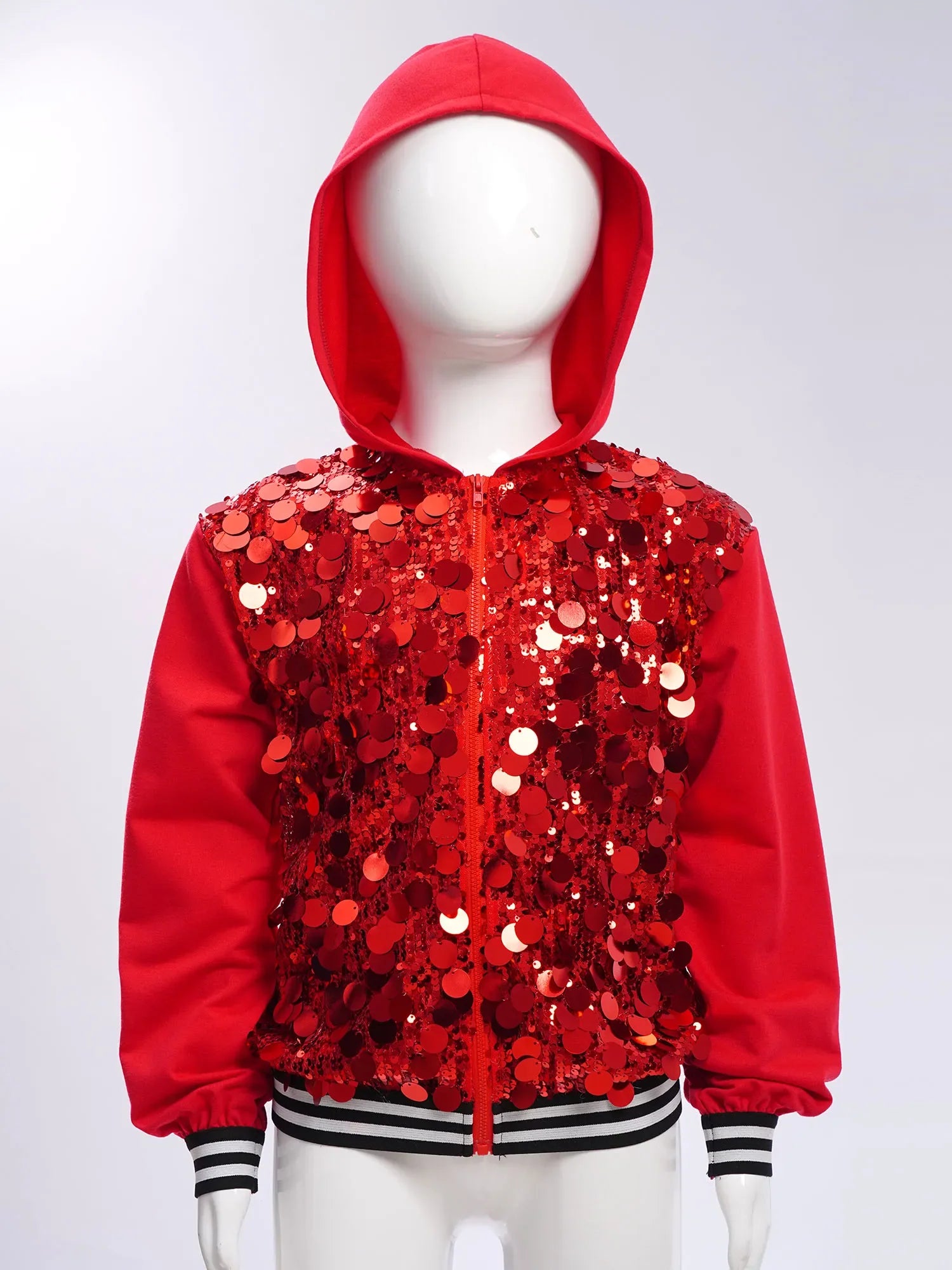 Girls Metallic Shiny Sequins Hooded Jacket (Age 6-16 YRS)