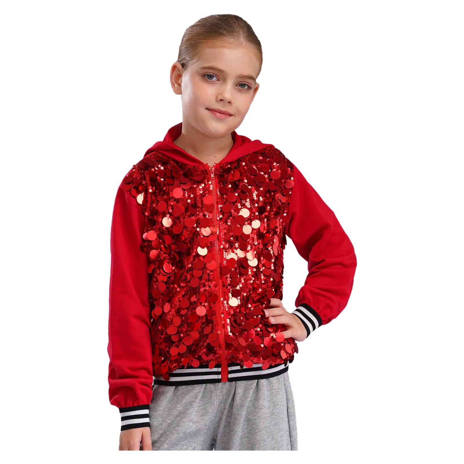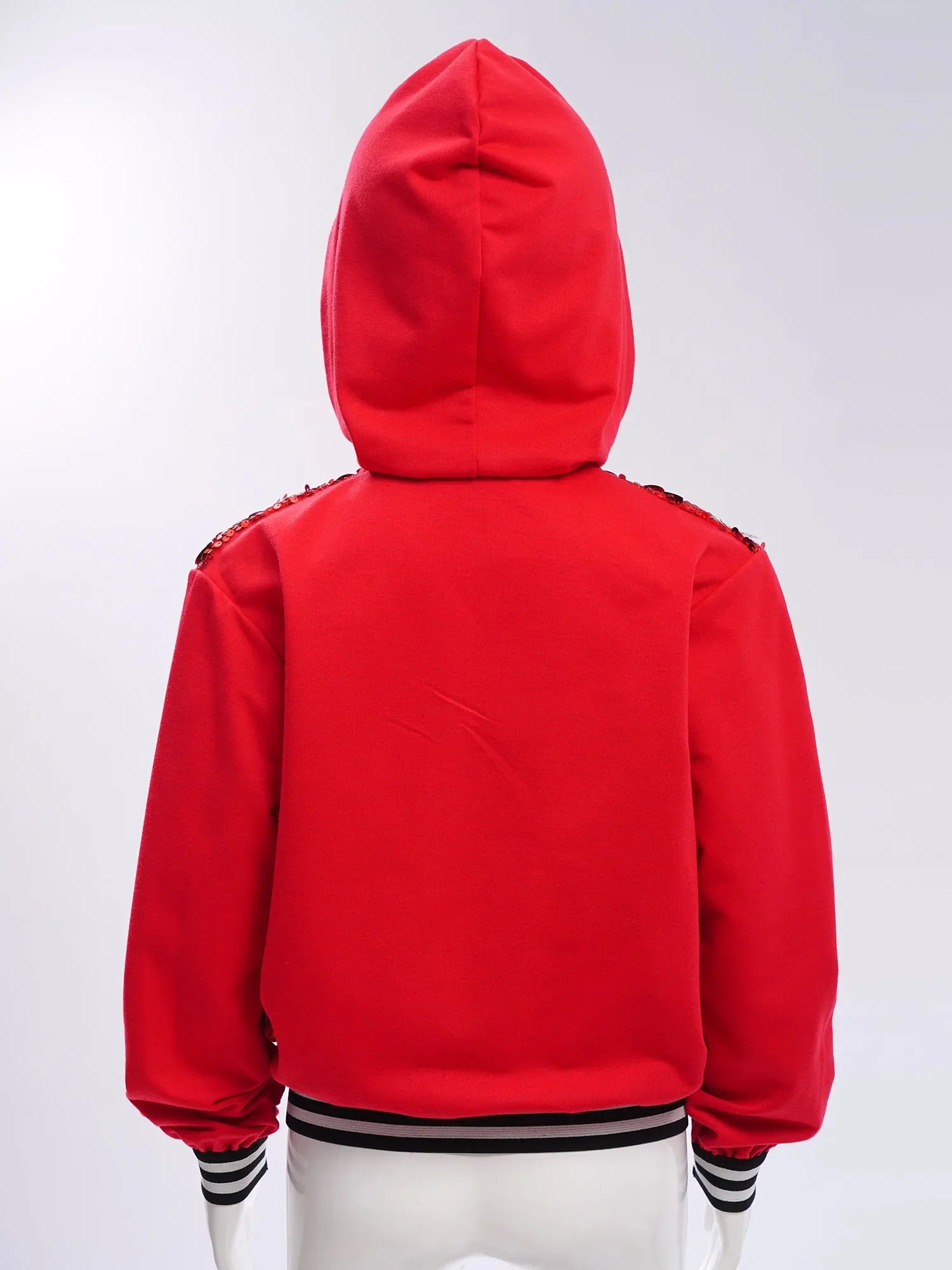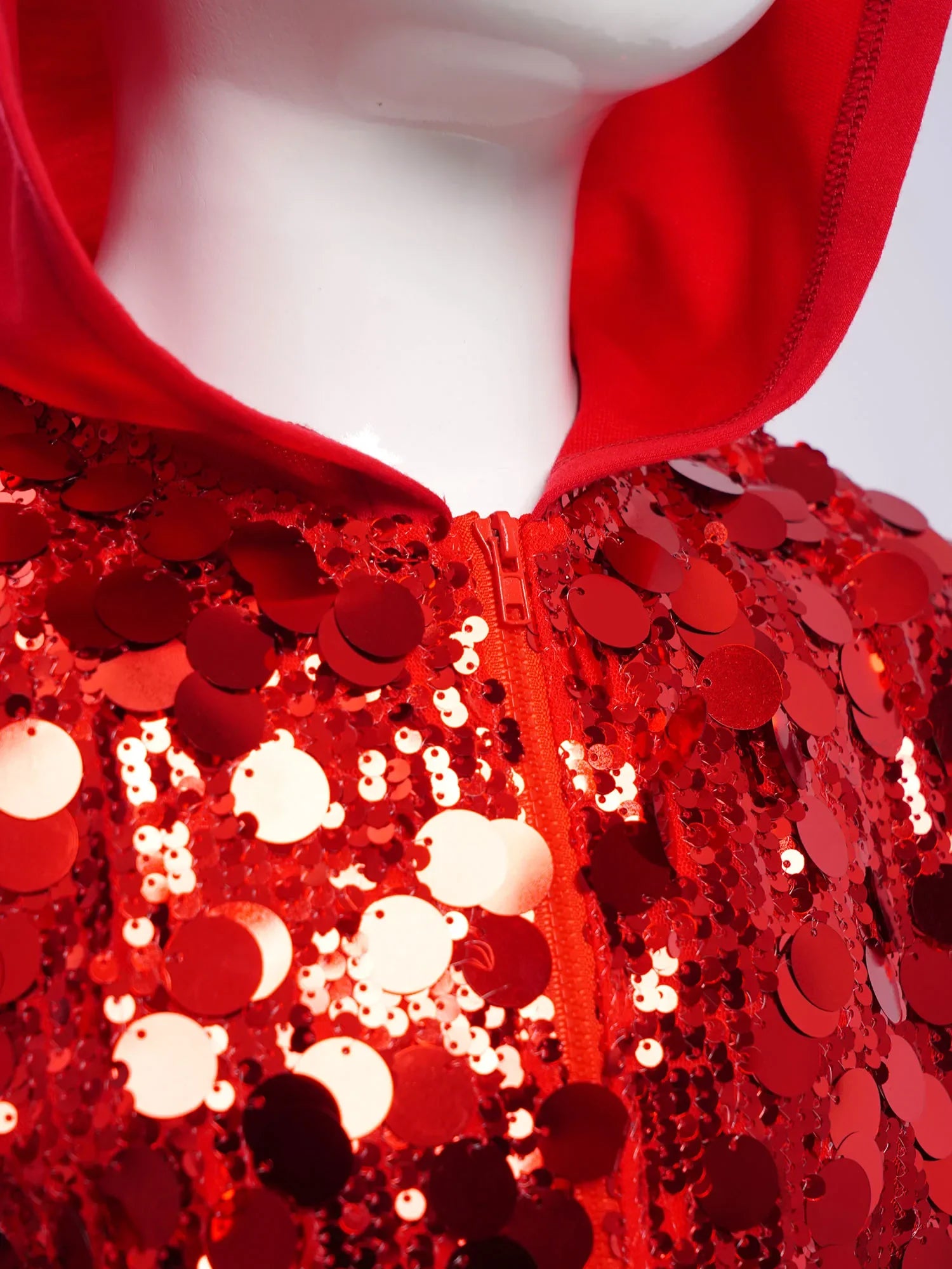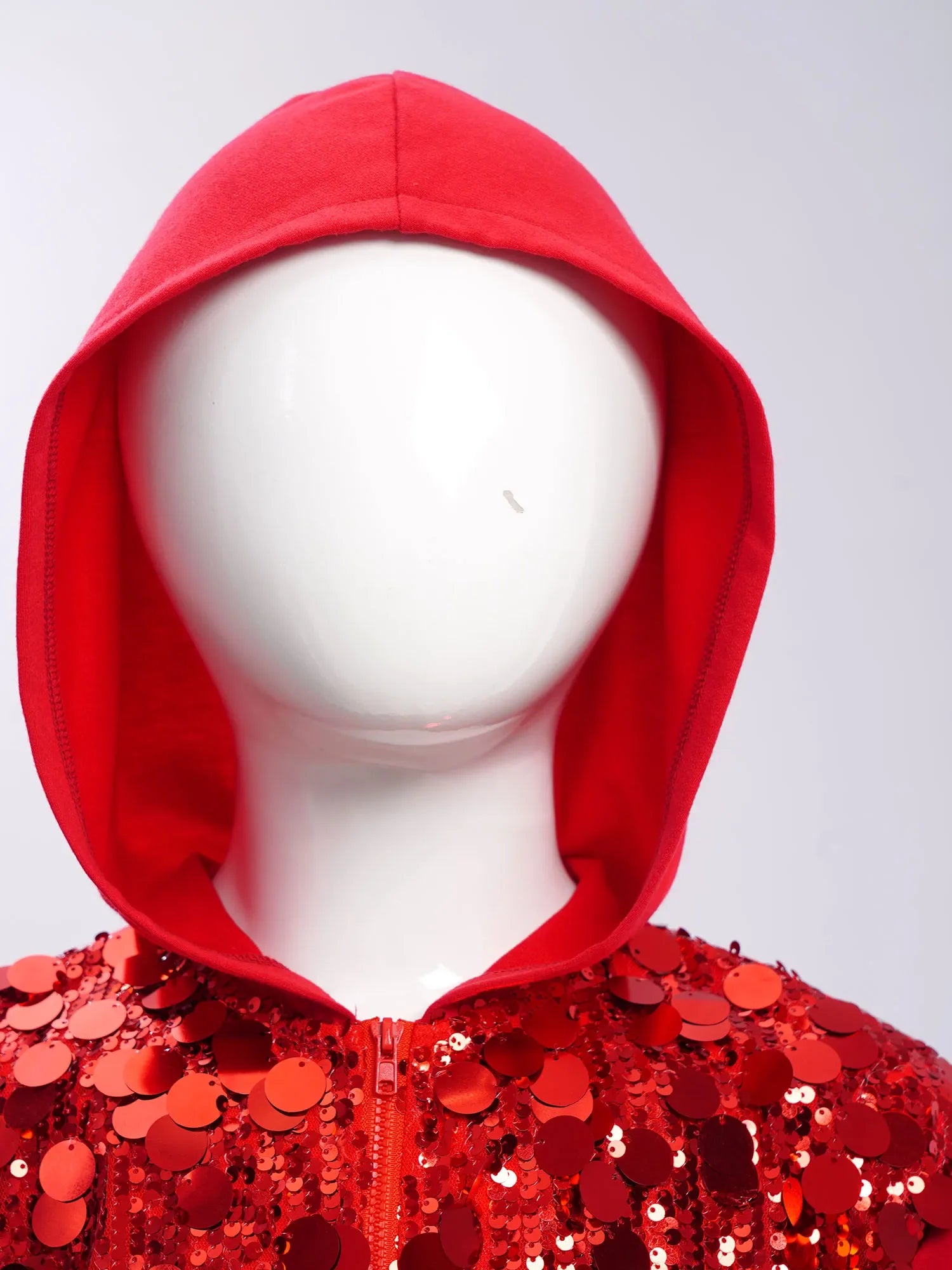 Girls Metallic Shiny Sequins Hooded Jacket (Age 6-16 YRS)