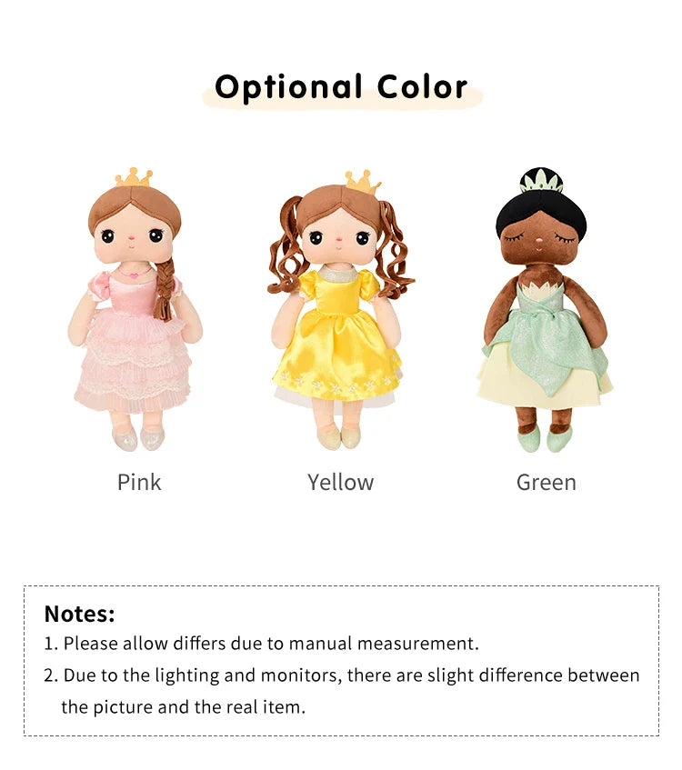 Add a touch of magic to your little one's playtime with Metoo Fairy Tale Princess Plush Doll! This 38cm doll is made with soft plush material and is CE certified for safety. Plus, no need to worry about any fire hazards with this doll. Perfect for imaginative playtime!