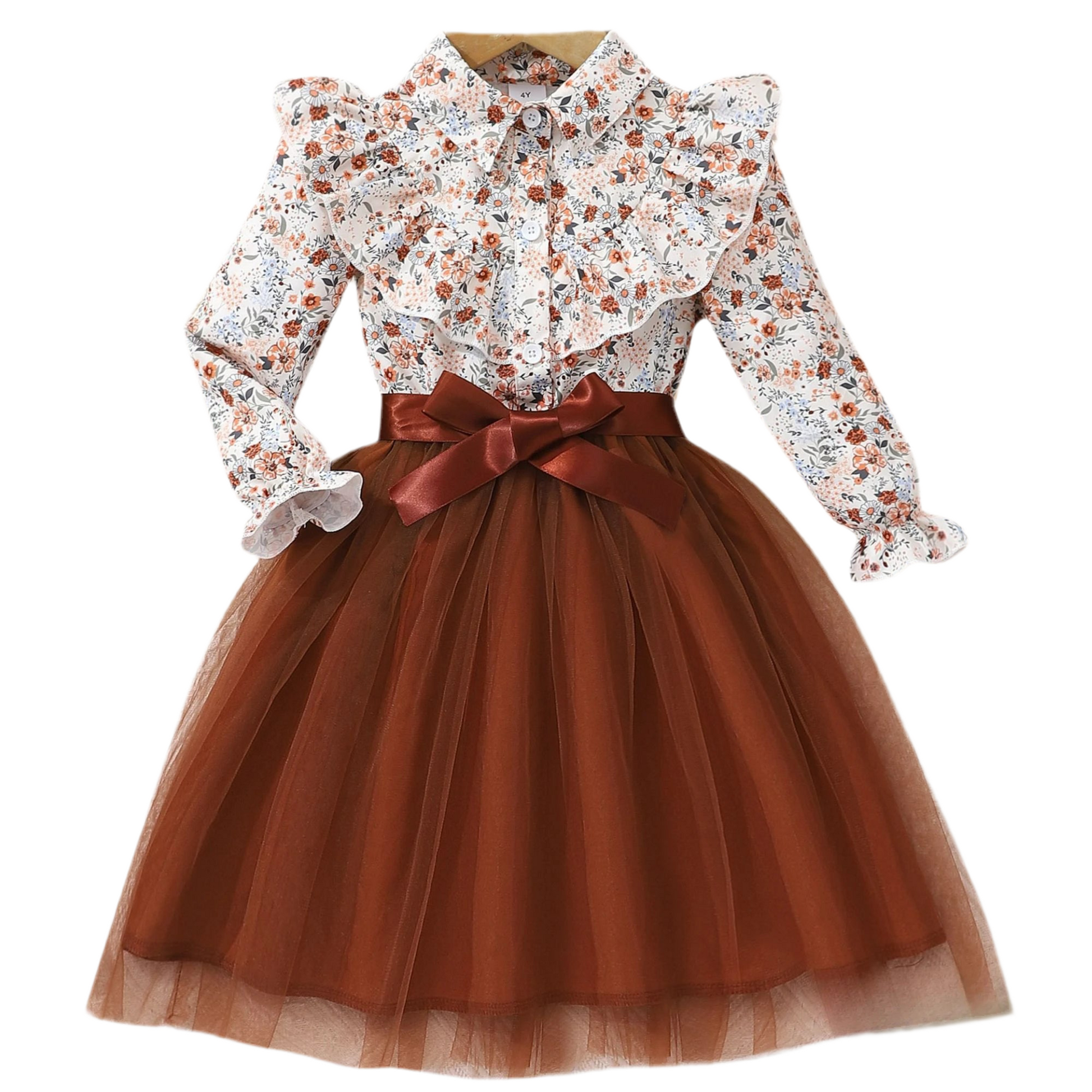 Girls Long Sleeve Ruffle Tulle Dress (Age 24M-7YRS)