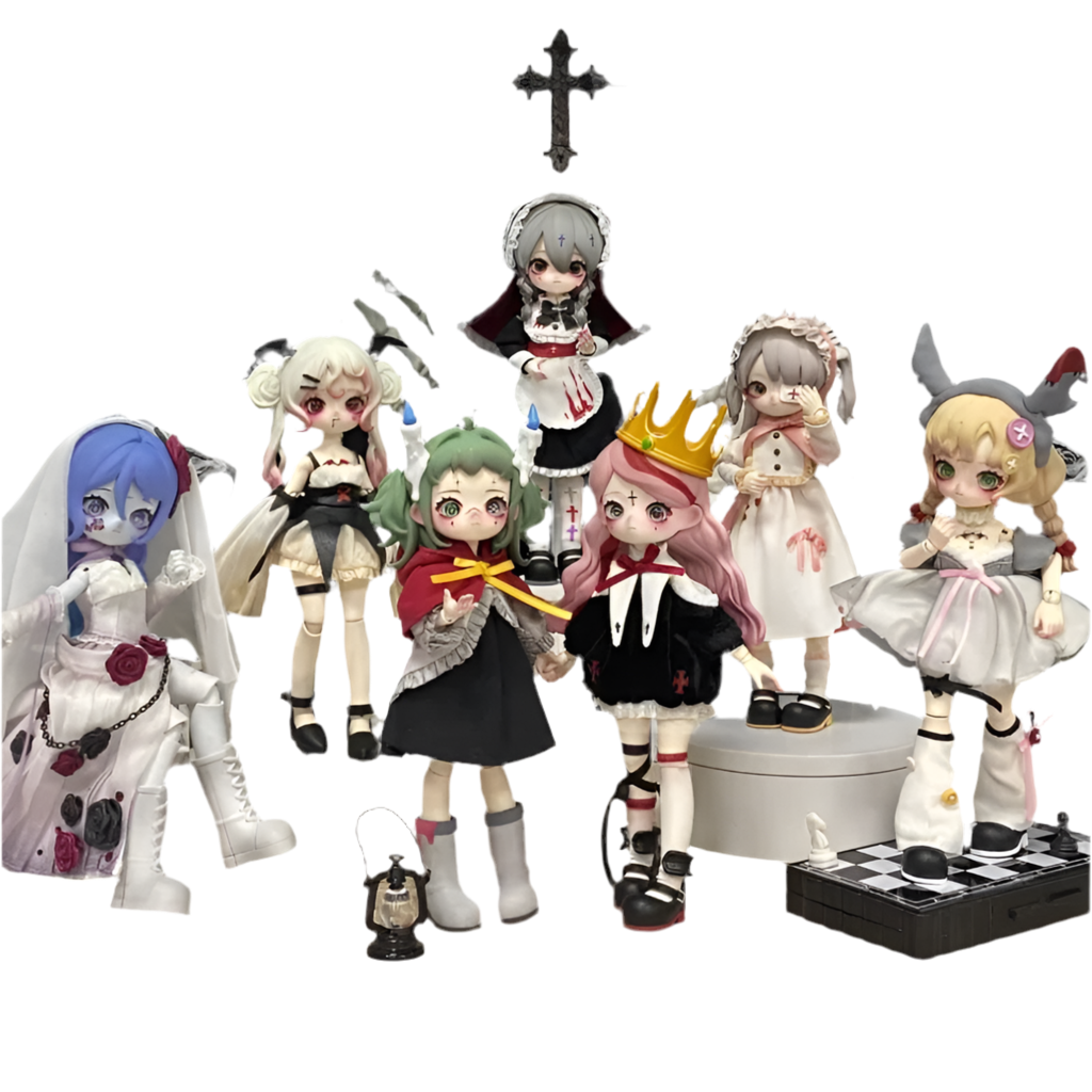 The Nyssa Bizarre Nightmare Series is a blind box collection of hauntingly beautiful 1/12 scale BJD-style action figures. Each figure features moveable joints, layered gothic fashion, and sculptural detail that blends eerie storytelling with high-end collectible design.