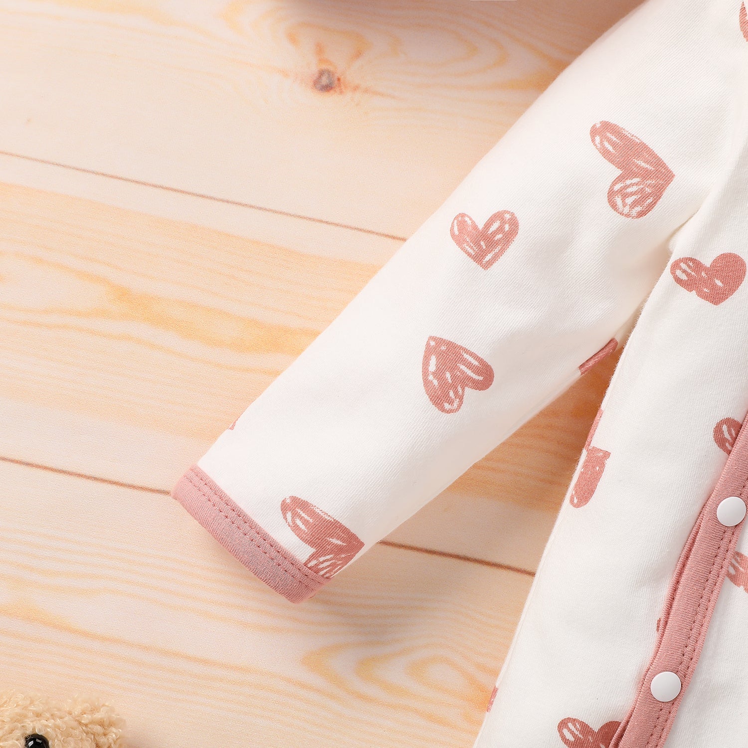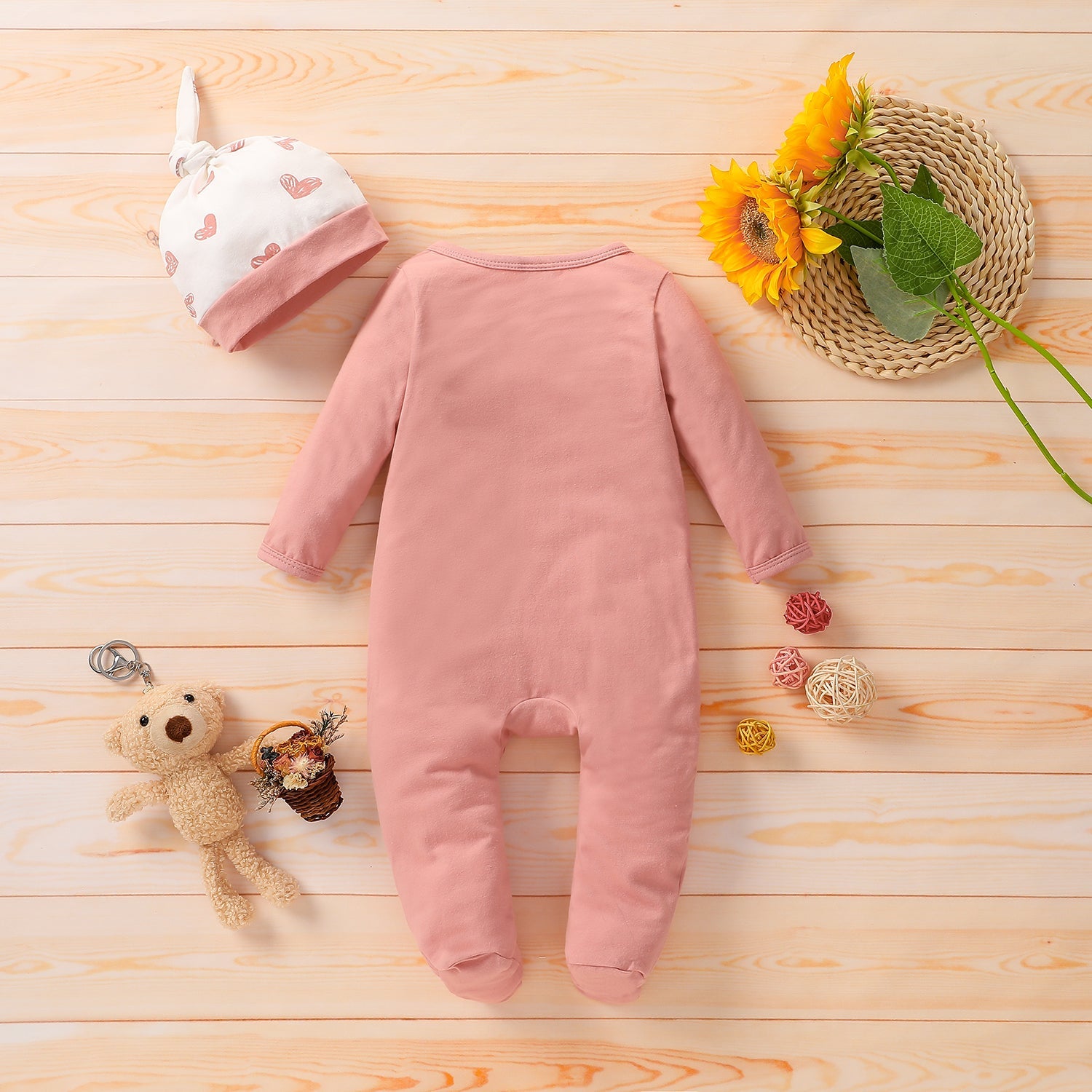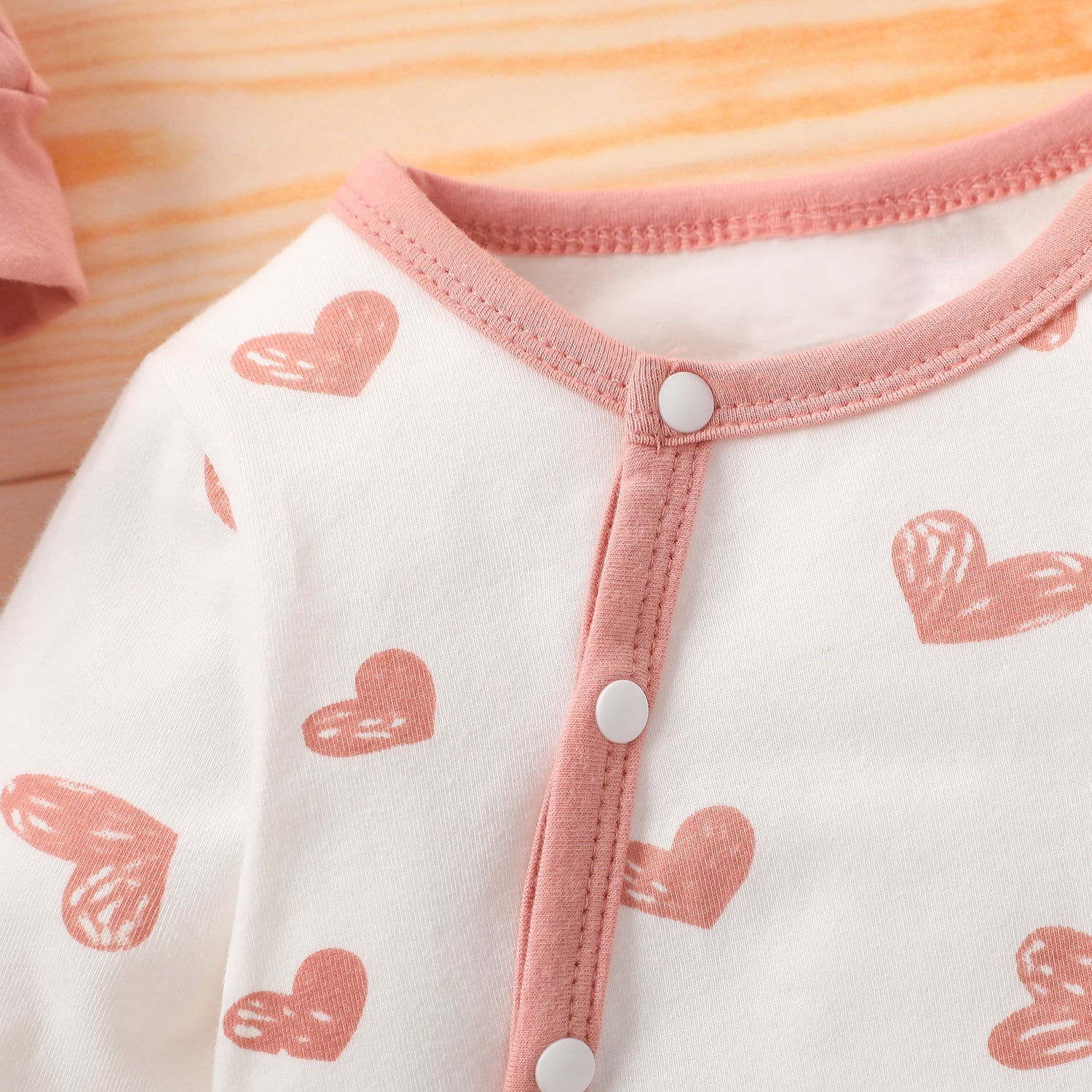 Baby Girls Cotton Long-sleeve Love Heart Print Footed Jumpsuit with Hat Set (Age 3M-18M)