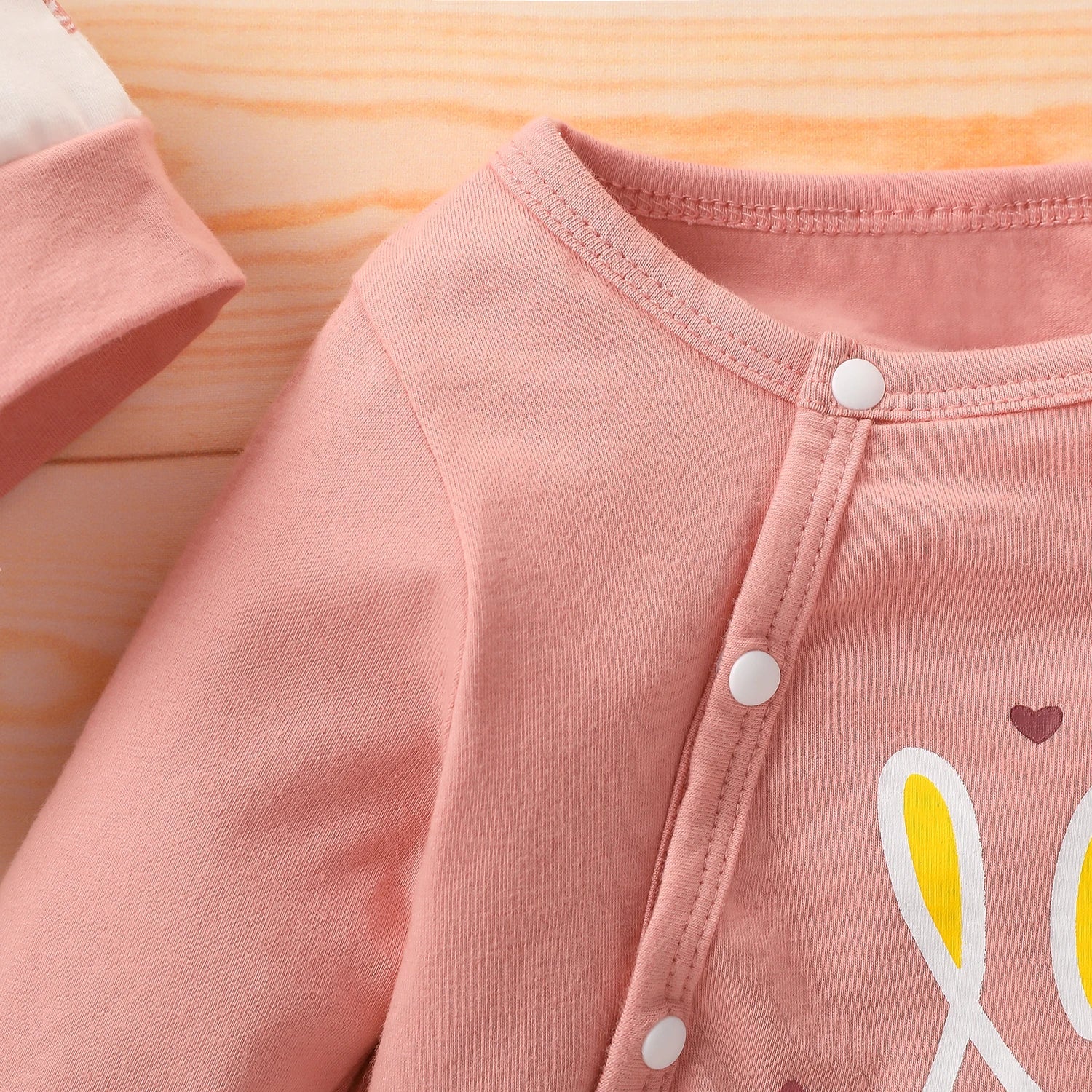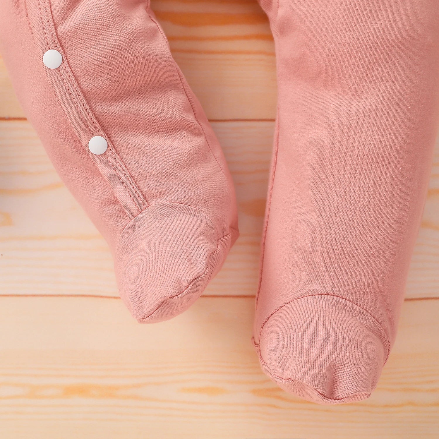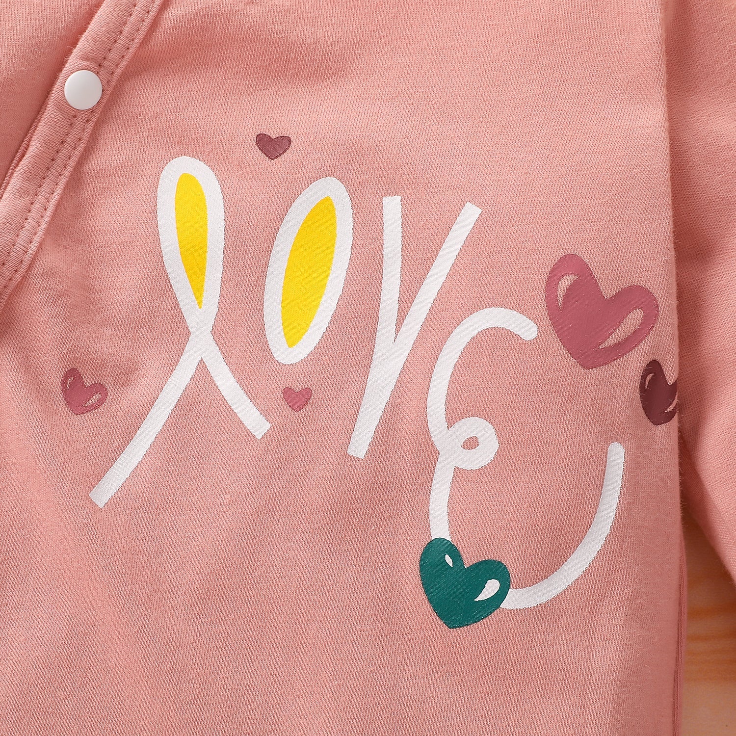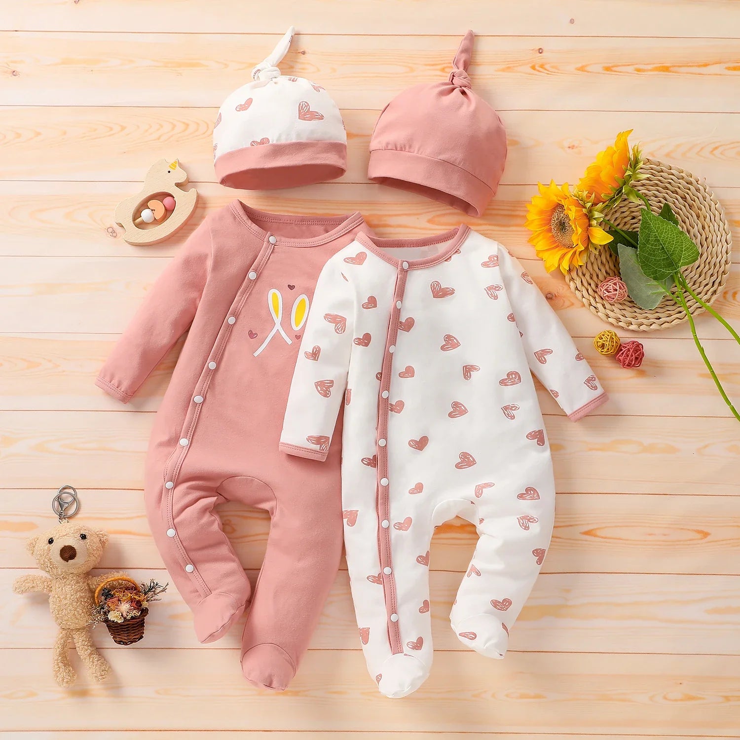 Baby Girls Cotton Long-sleeve Love Heart Print Footed Jumpsuit with Hat Set (Age 3M-18M)