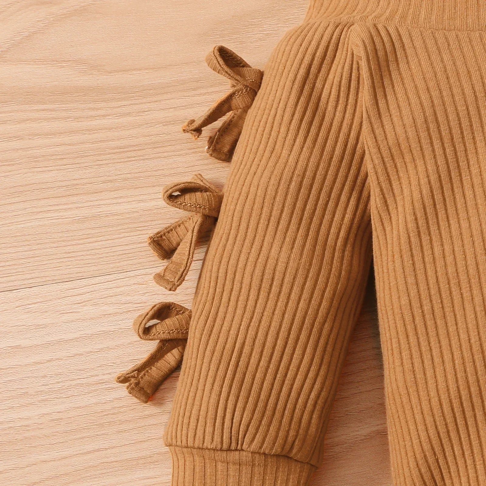 Dress your little one in style with our Baby Girls Ribbed Bowknot Long-Sleeve Top and Floral Print Bell Bottom Trousers! Made with soft and comfy materials, this set features decorative bowknots on both sleeves and an elasticized waist for easy dressing. Available in sizes for ages 3-24 months.