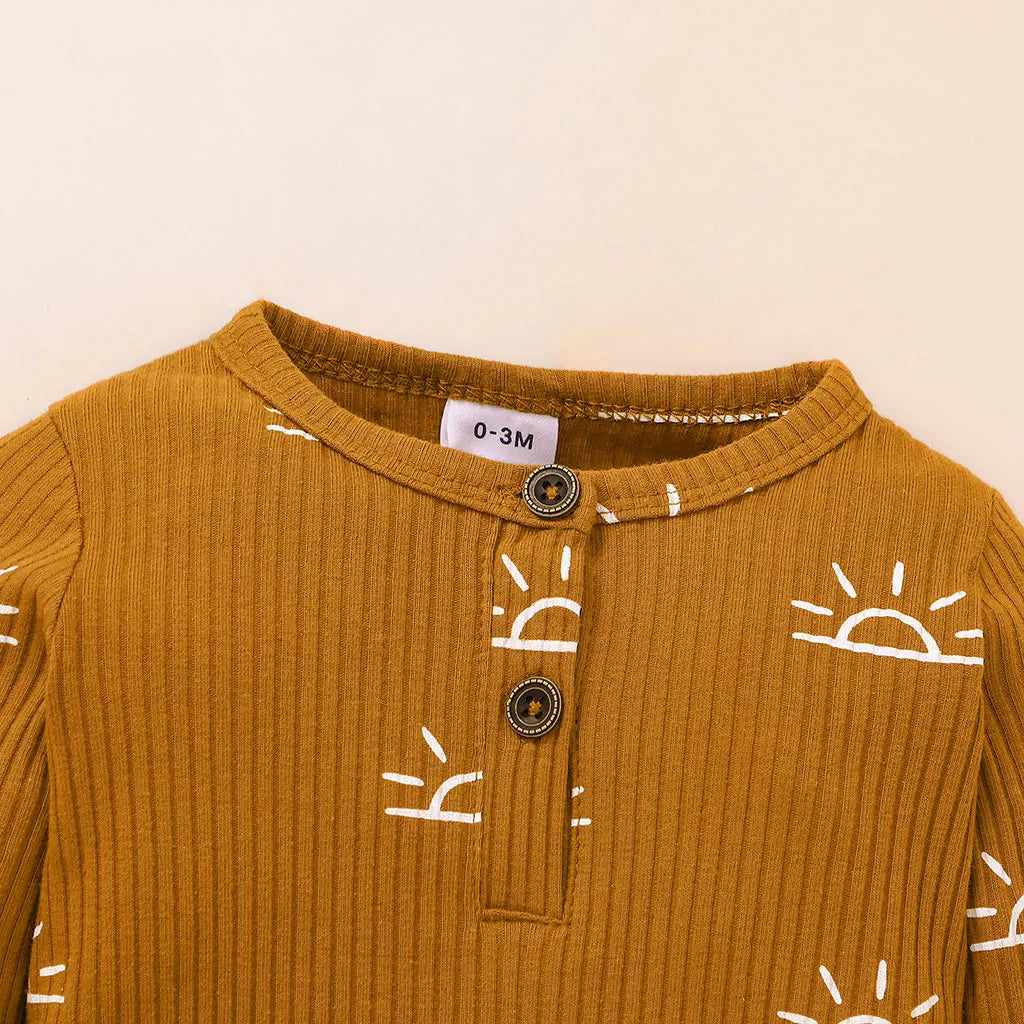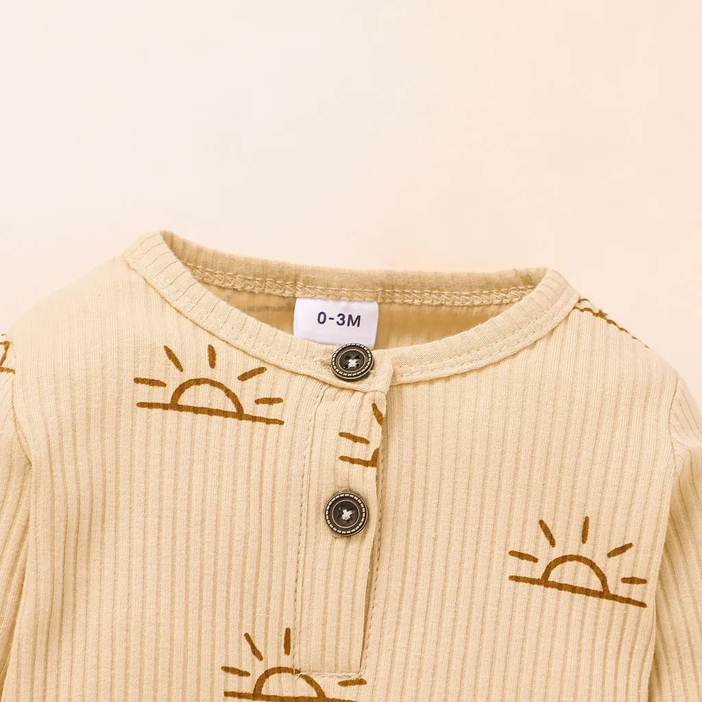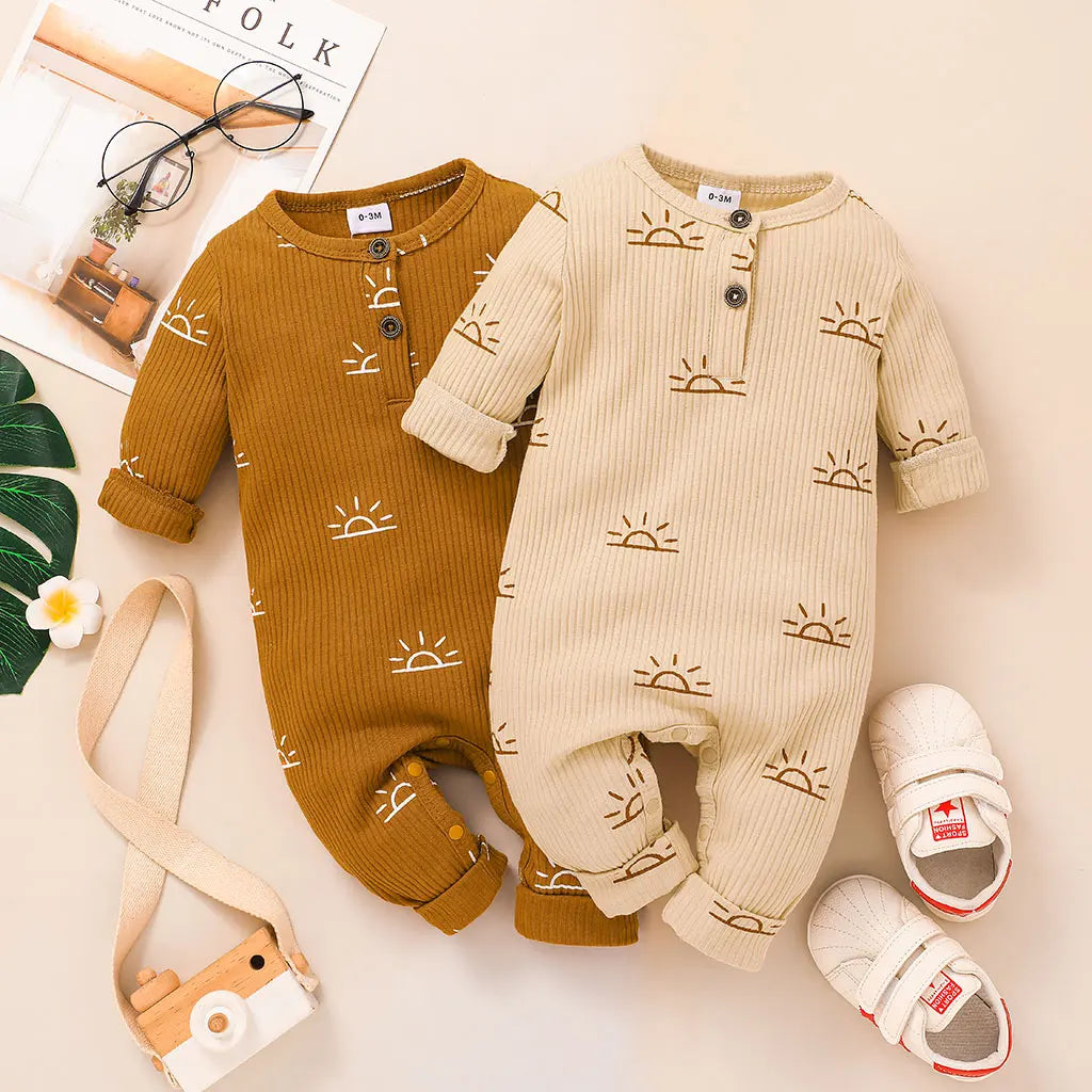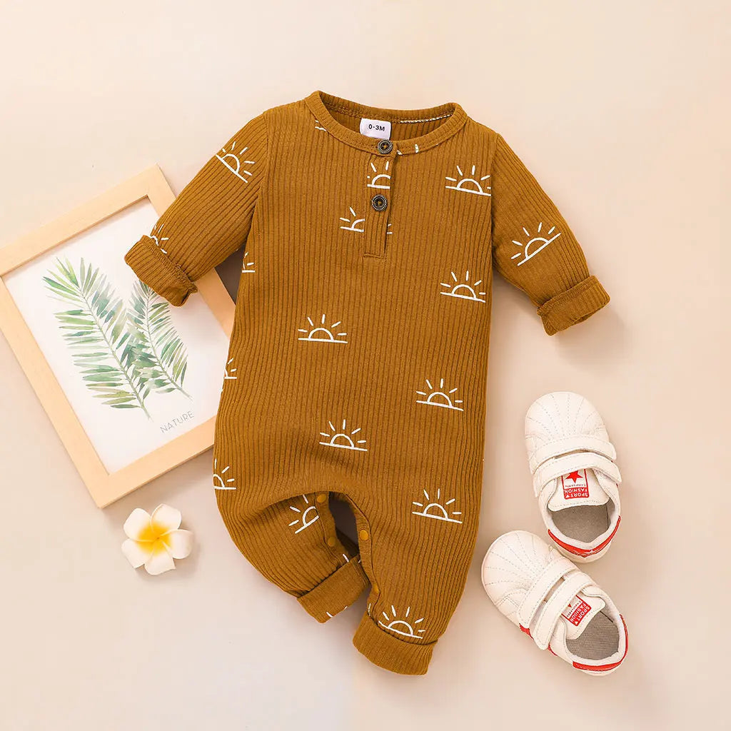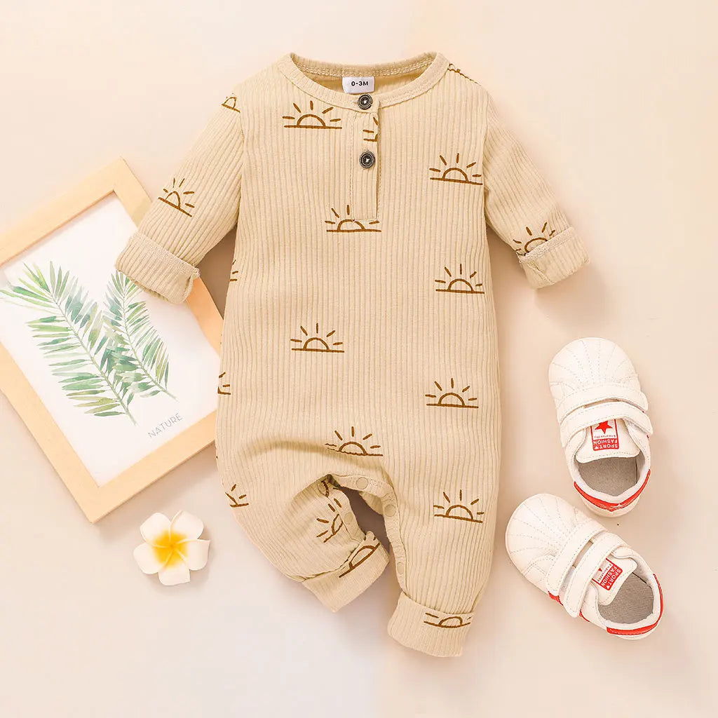 Baby Boy Cotton Ribbed Sun Print Long-Sleeve Jumpsuit (Age Newborn-18M)