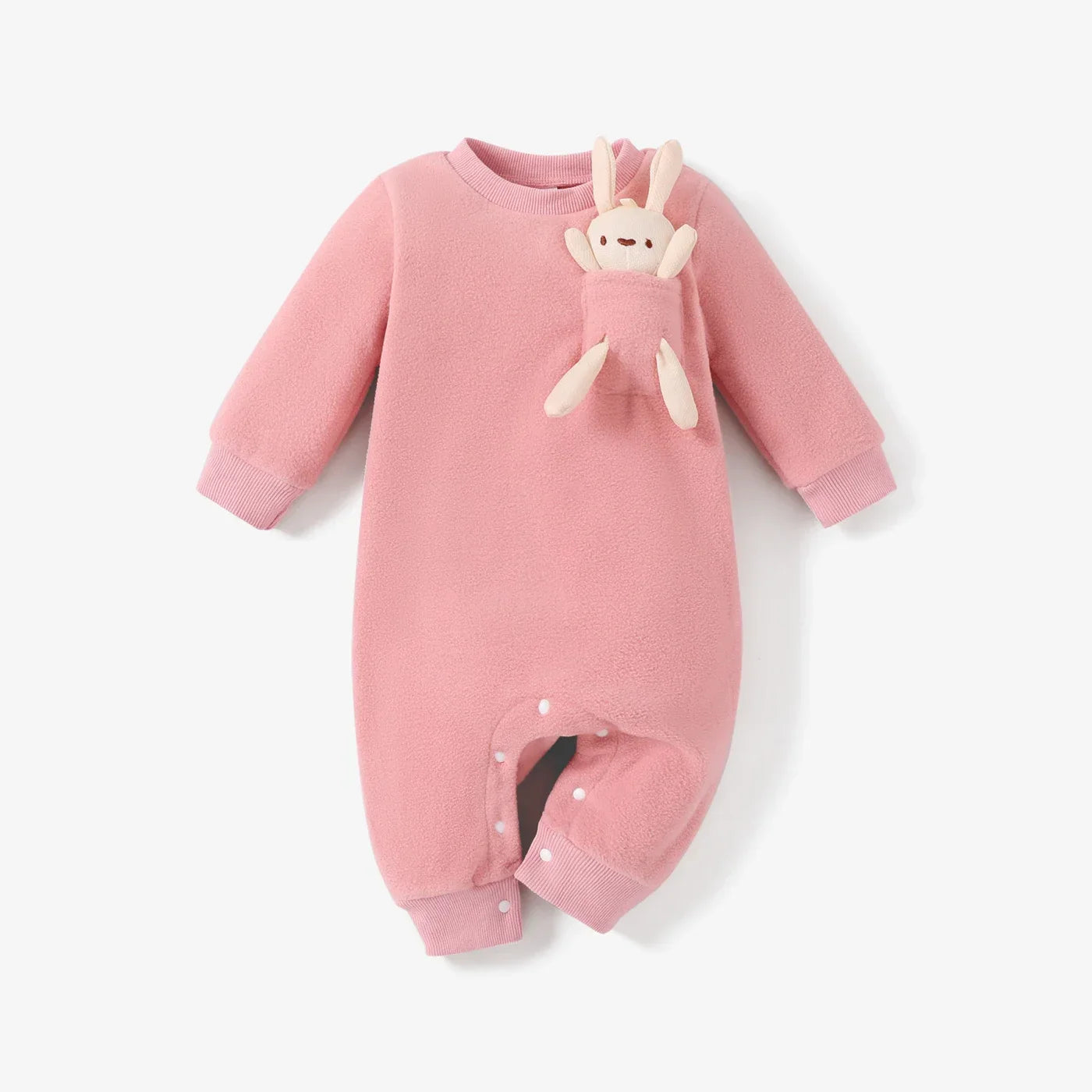 Get your little one ready to hop into winter with this Hyper-Tactile 3D Rabbit Jumpsuit! Made with 100% polyester fiber and lined with thick coral fleece, this jumpsuit offers warmth and comfort. The round neckline and long sleeves add a cute touch, while the rabbit pattern adds a playful flair. Don't miss out on this imported, must-have for the winter season!