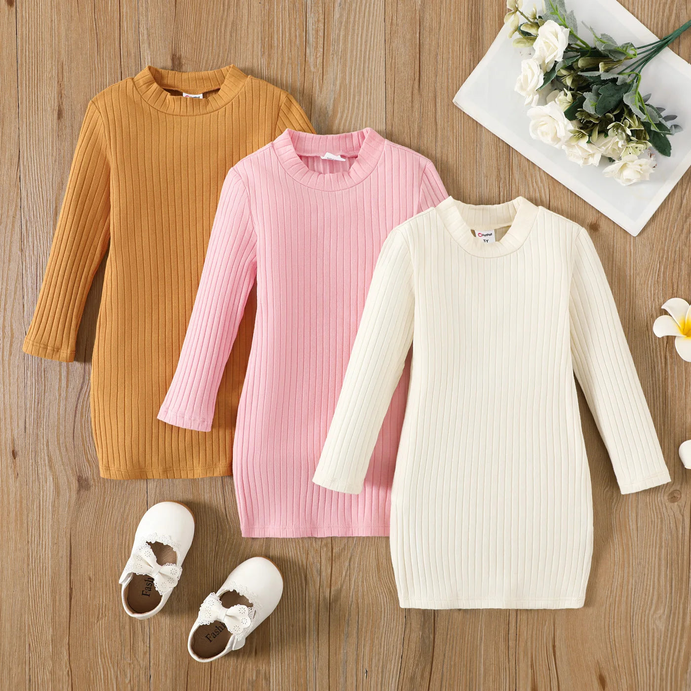 Girl's Basic Knit Long Sleeve Dress (Age 24M-6YRS)