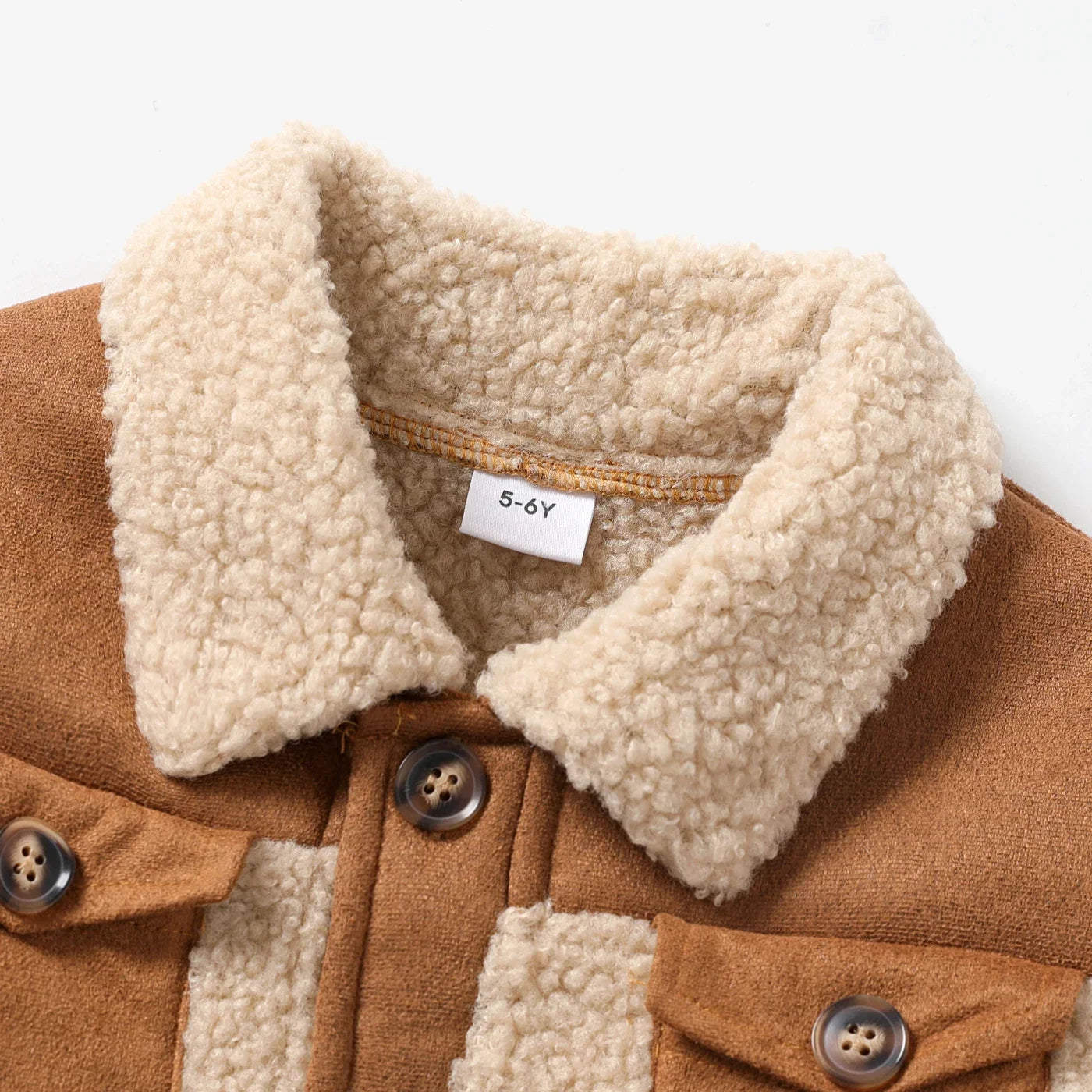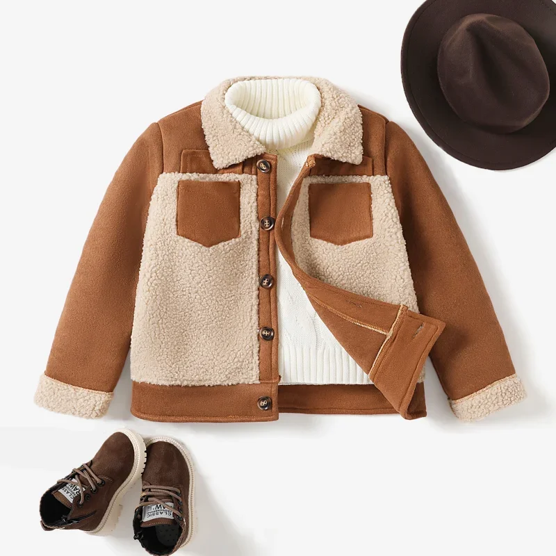 Introducing the coolest winter jacket for kids! Made of 100% polyester with suede and faux lamb wool, this trendy and warm coat is perfect for outdoor activities. With a classic and casual style and a moderate fit, it's the ultimate choice for fashion-forward boys (age 5-12yrs). Machine washable for easy care.