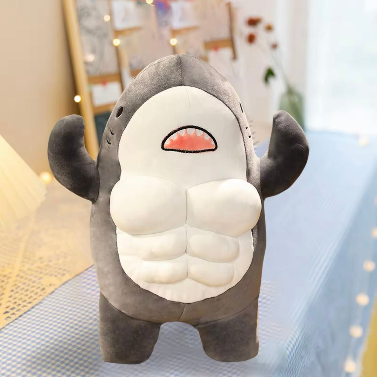 [Shark Lover's Must-Have] - Elevate your shark collection with this amazing muscle shark plush toy! Its size (approximately 45cm/35cm) and hilarious 3D muscle design add a special touch. You'll have endless fun with this cuddly and fierce toy.