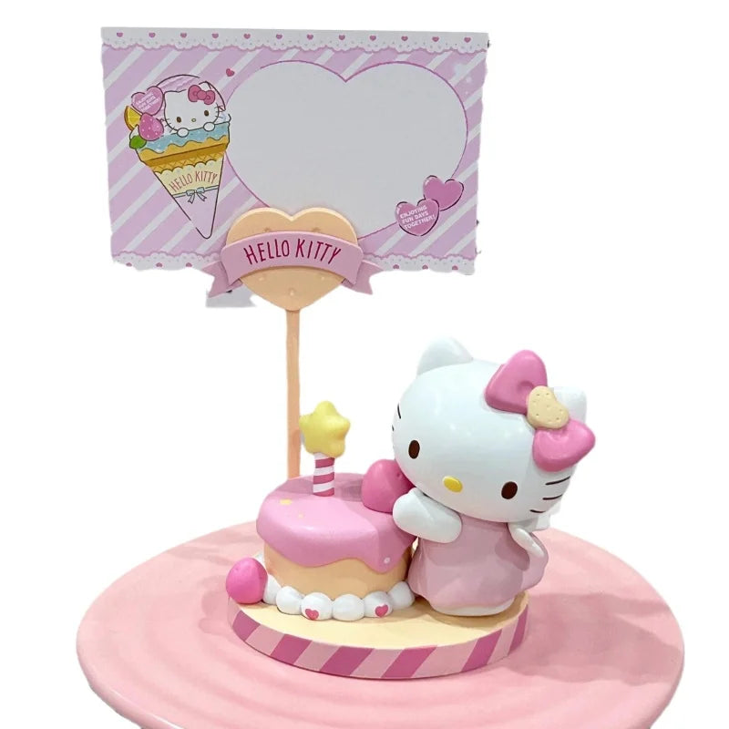 The Sanrio Dessert Series Memo Pendant Blind Box features beloved characters like Hello Kitty, My Melody, Kuromi, and Cinnamoroll reimagined as adorable dessert-themed memo holders. Each pendant includes a mini character figurine perched atop a dessert base with a clip for notes, photos, or reminders.