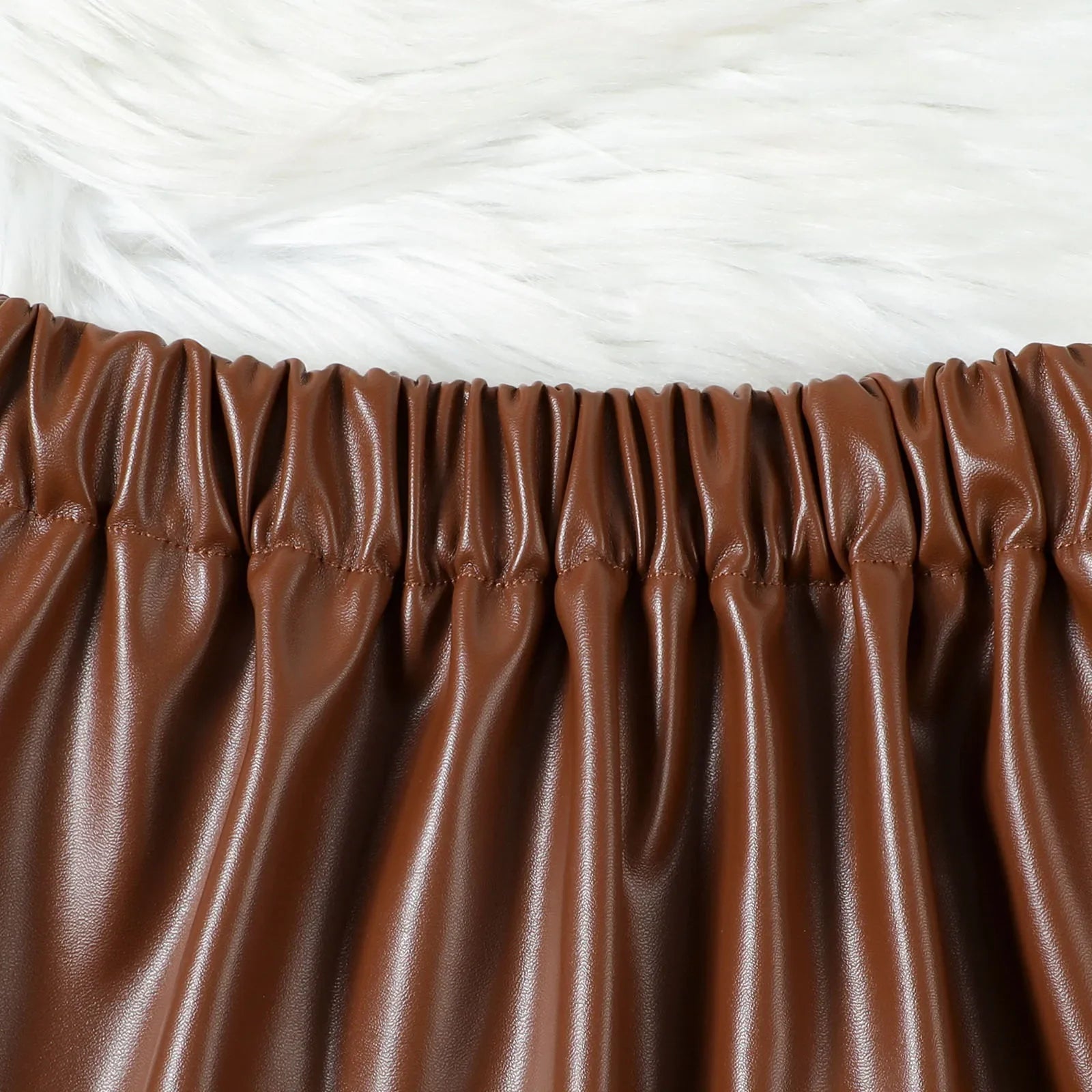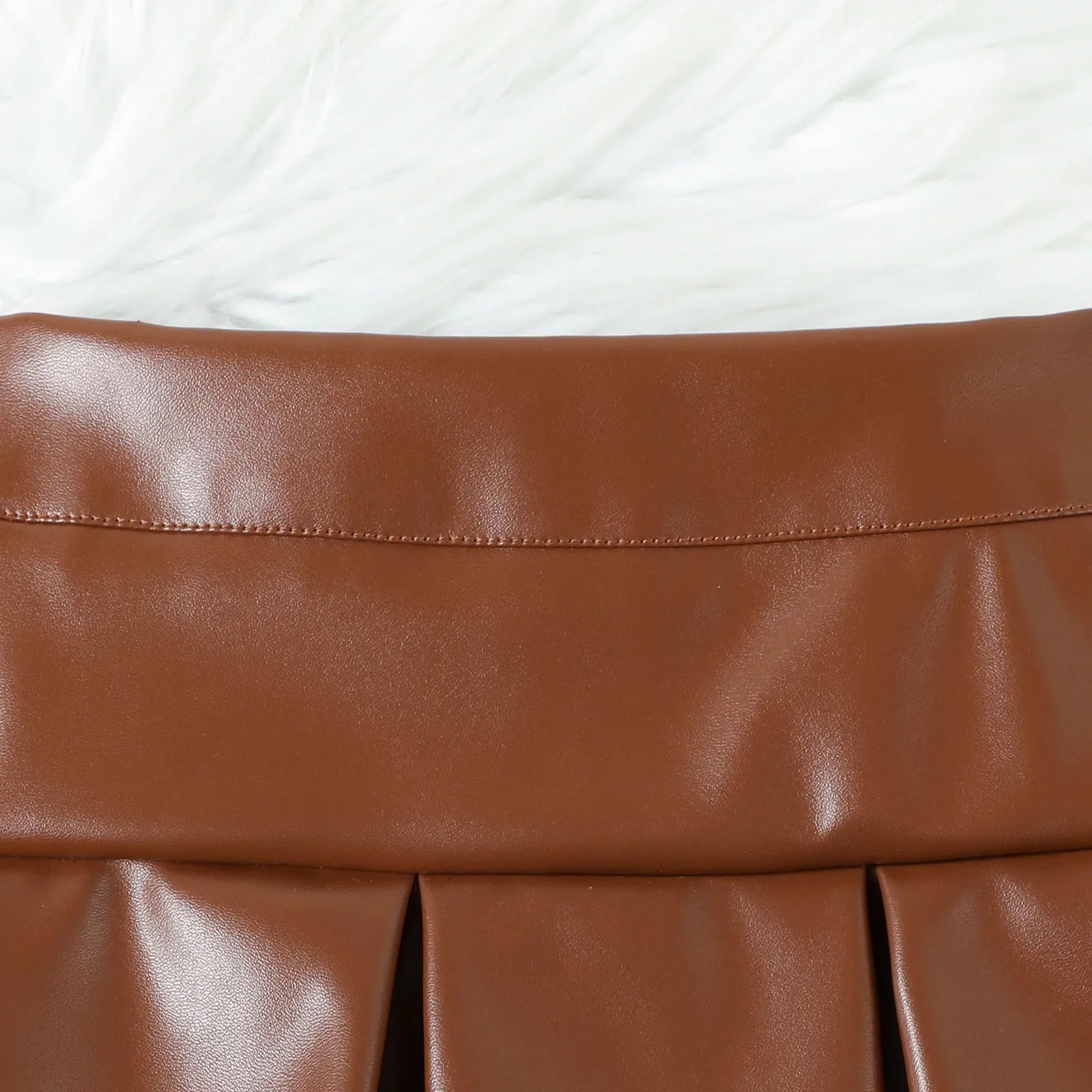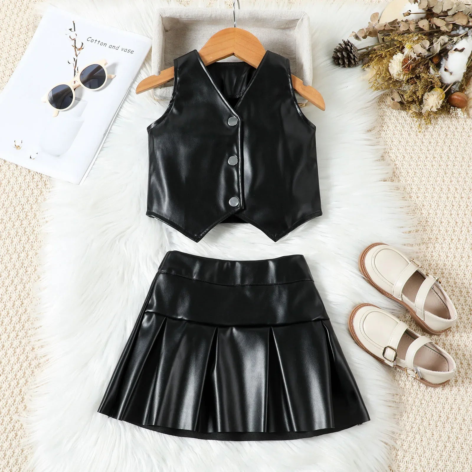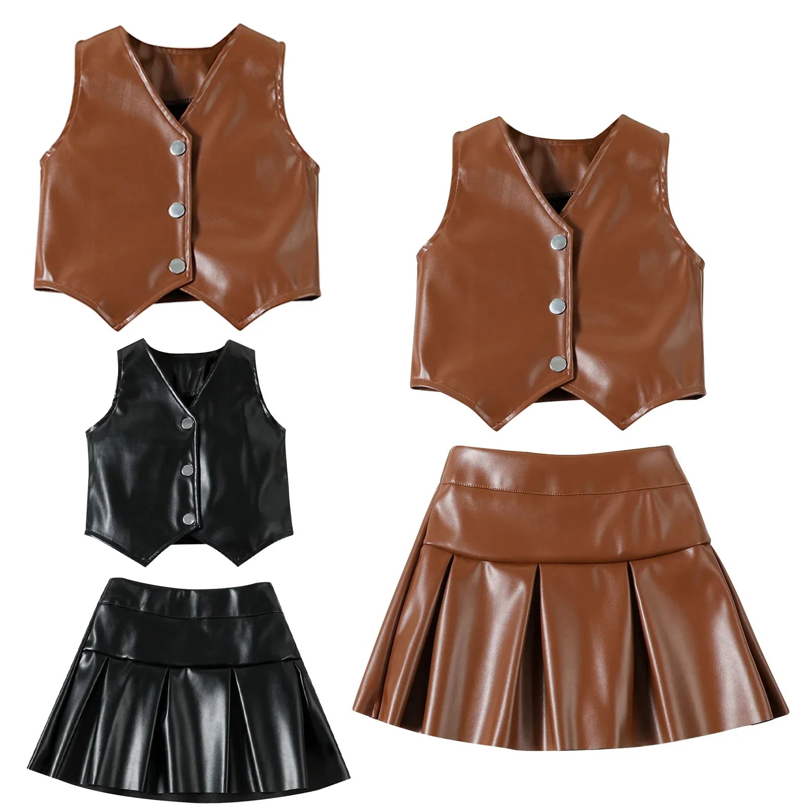 Toddler Girls Faux Leather Sleeveless Vest Top & Pleated Skirt Set (24M-6YRS)