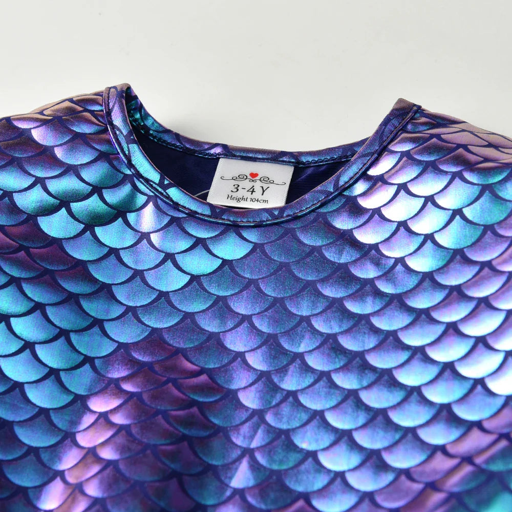 Girls Purple Mermaid Long Sleeve Layered Tutu Dress (Age 3-12YRS)