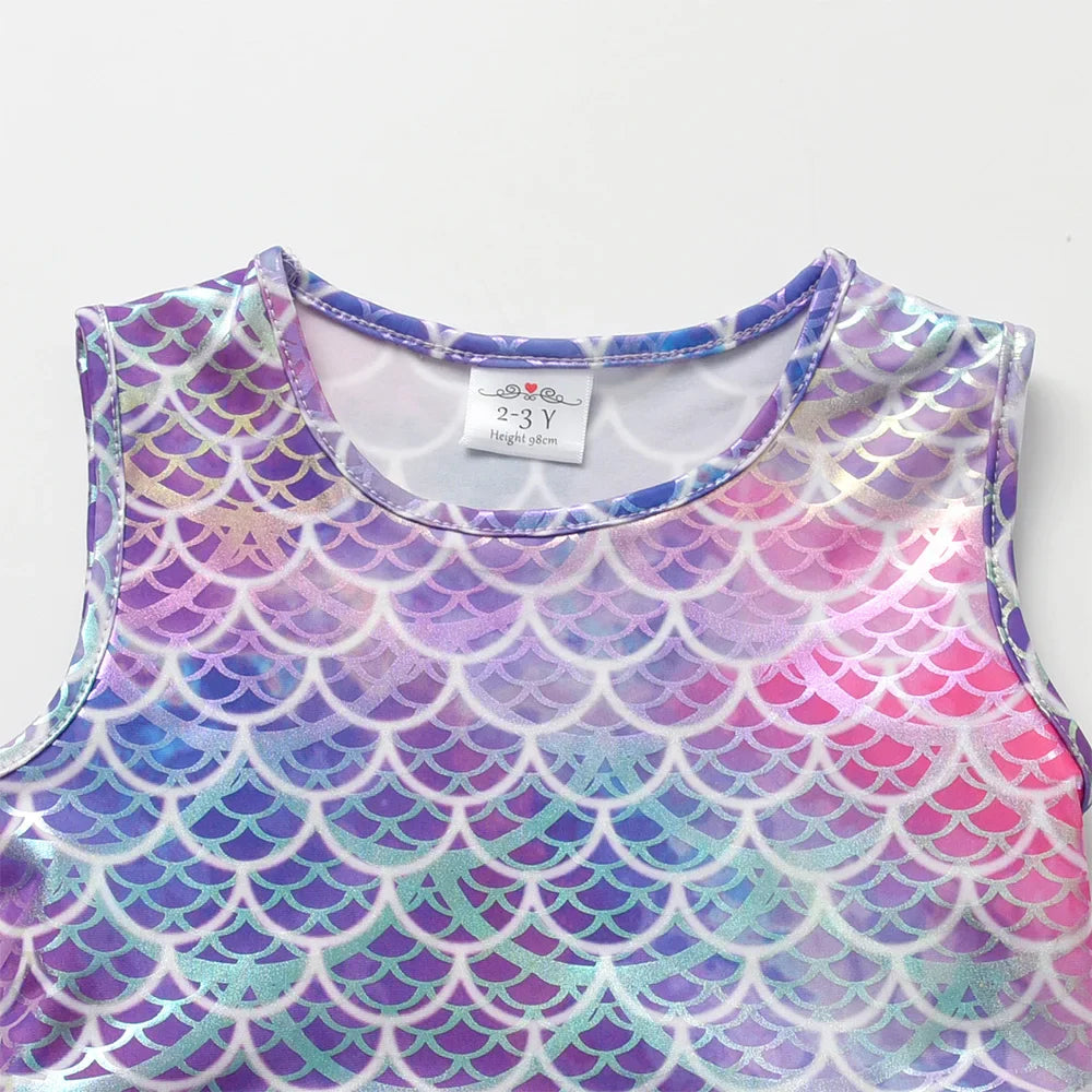 Your little one will feel like a mermaid in this playful dress! Made from soft cotton with ruffle tulle details, it's perfect for ages 3-12. The voile and mesh materials add an extra touch of whimsy. Dive into fun and style with this mermaid print dress!
