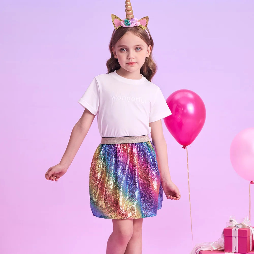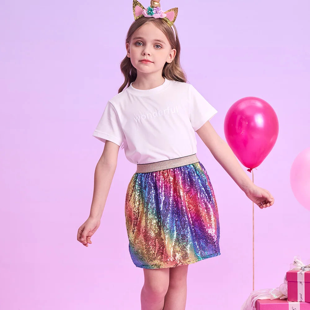 Girls Rainbow Sequin Skirt (Age 3-10YRS)