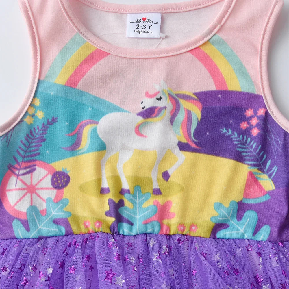 Girls Purple Unicorn Mesh Dress (Age 3-12YRS)